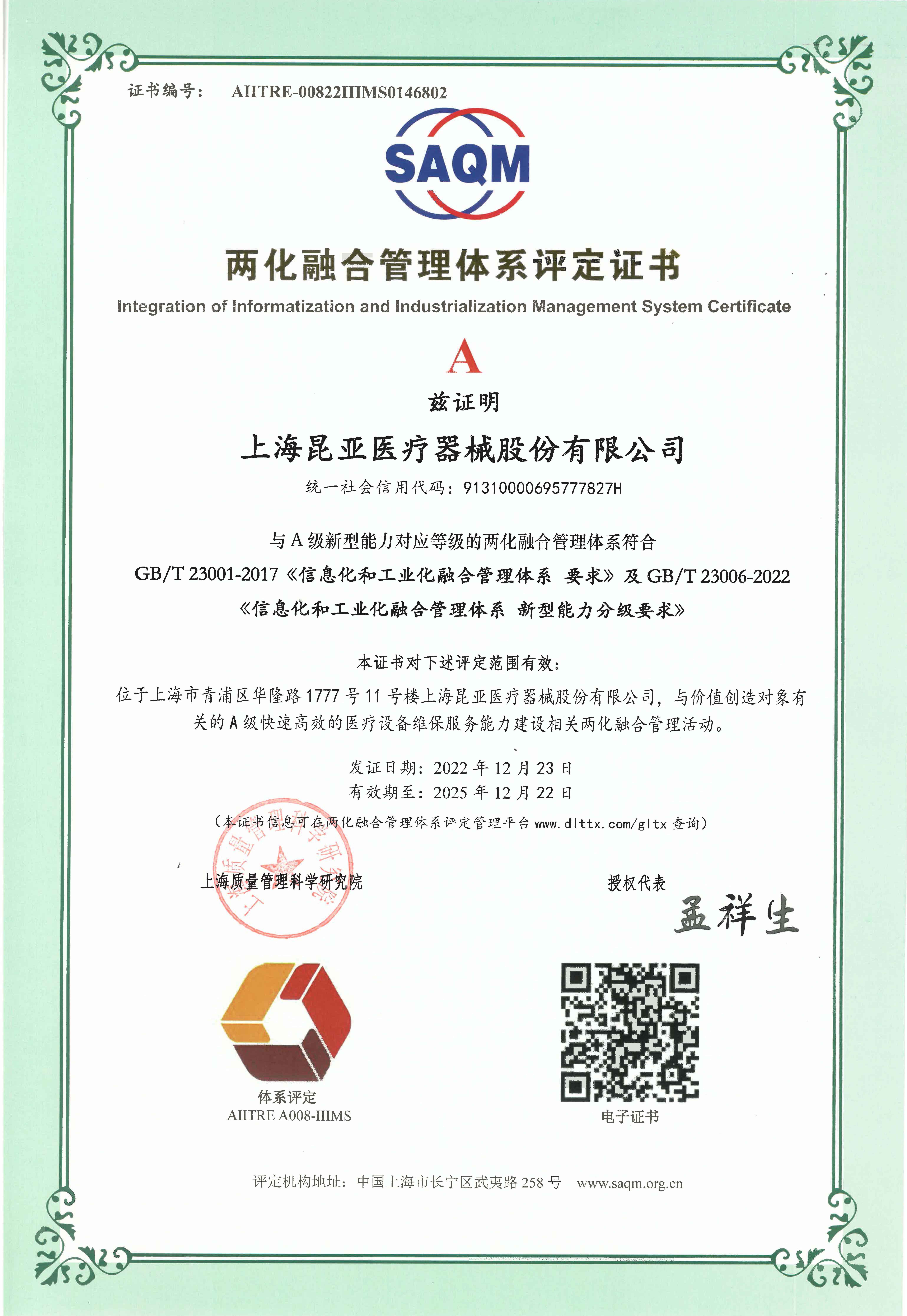 上海昆亞醫(yī)療器械股份有限公司是一家醫(yī)療設(shè)備服務(wù)平臺提供商,公司主營業(yè)務(wù)為醫(yī)院醫(yī)療設(shè)備整體提供維保外包服務(wù),致力于全院醫(yī)療設(shè)備預(yù)防性全生命周期管理;以全面提升醫(yī)院醫(yī)療設(shè)備管理水平、臨床醫(yī)療設(shè)備使用率和開機率打造的專業(yè)化醫(yī)療設(shè)備服務(wù)平臺。 昆亞醫(yī)療,已通過ISO14001環(huán)境管理體系、ISO45001職業(yè)健康與安全管理體系、ISO9001質(zhì)量管理體系、ISO13485醫(yī)療器械質(zhì)量管理體系、ISO27001信息安全管理體系五大國際認證;同時,昆亞醫(yī)療為合作客戶提供設(shè)備服務(wù)保險;2017年,昆亞醫(yī)療榮獲得上海市高新技術(shù)企業(yè)稱號,并獲得上海市經(jīng)信委工業(yè)互聯(lián)網(wǎng)創(chuàng)新發(fā)展專項資金支持;2019年,昆亞醫(yī)療榮獲兩化融合管理體系評定證書;2021 年,榮獲“張江之星”企業(yè)稱號、榮獲中國設(shè)備管理協(xié)會醫(yī)療行業(yè)分會廣東省培訓(xùn)基地,通過企業(yè)標準管理體系認證、企業(yè)誠信管理體系認證;2022 年,昆亞醫(yī)療榮獲上海市“專精特新”企業(yè)稱號,通合規(guī)管理體系認證、反賄賂管理體系認證。。