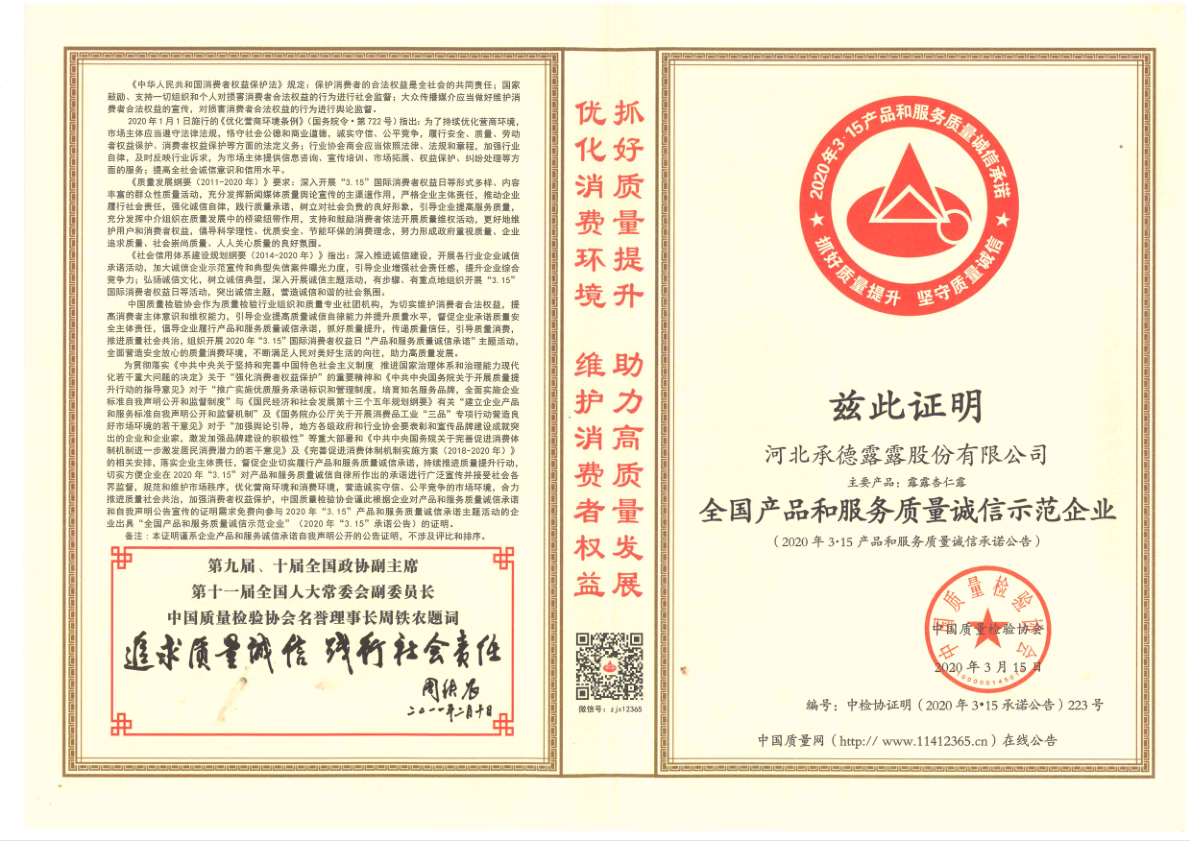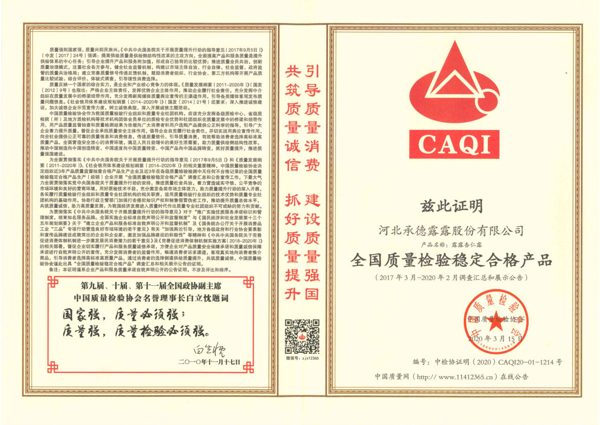 承德露露股份公司于1997年10月17日在河北省工商局依法注冊登記成立,1997年11月13日在深圳證券交易所掛牌上市,證券簡稱“承德露露”,證券代碼“000848”。承德露露不僅是中國植物蛋白飲料的開創者,也是國內飲料行業首批上市公司之一。公司控股股東為萬向三農集團有限公司,持股比例為42.93%。公司目前占地面積100畝,共有8條生產線,員工一千余人,年產能達25萬噸。