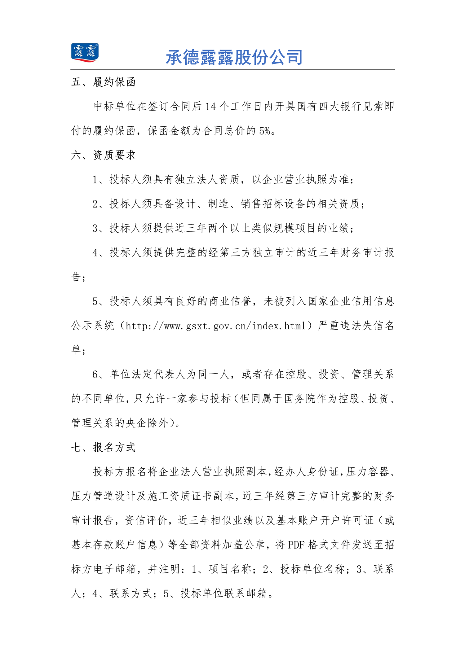 承德露露股份公司 年產 50 萬噸露露系列飲料項目(一期) 卸罐上蓋及后包整線設備招標公告