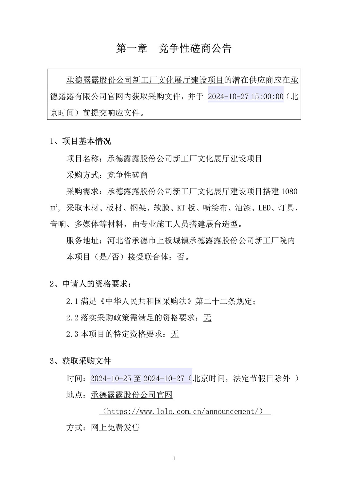 承德露露股份公司新工廠文化展廳建設(shè)項(xiàng)目